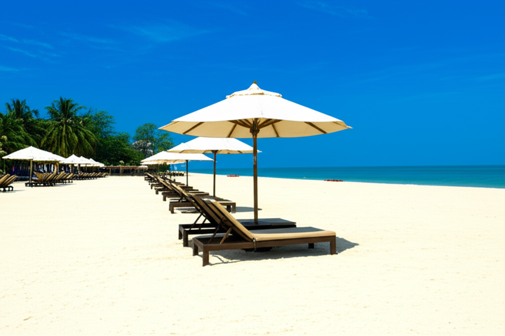 Setibanya di atlas beach club pengunjung akan disambut oleh pemandangan laut biru yang membentang luas di bawah langit yang cerah Pasir putih yang halus menyejukkan kaki sementara ombak lembut menghantam tepian pantai menciptakan irama alami yang menenangkan
